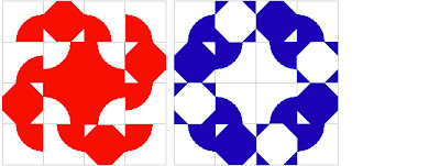 Starting with these two blocks, Snowball and Drunkard's path, I want to see what motifs I can create by combining them.